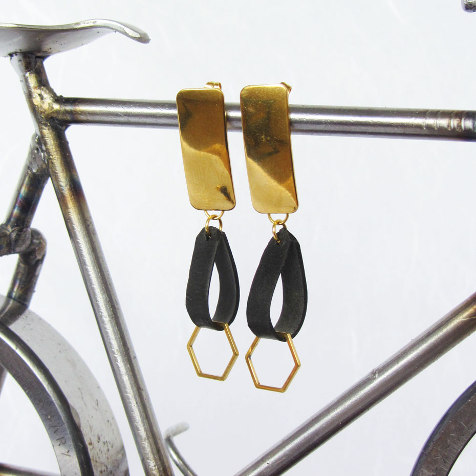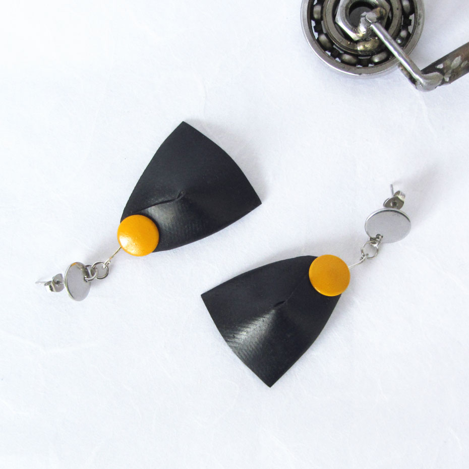 Our designer earrings are made with cleaned bicycle tube elements and an anti-allergenic stainless steel assembly. Each of them is handcrafted using original creative ideas, among which everyone will find their favorite.